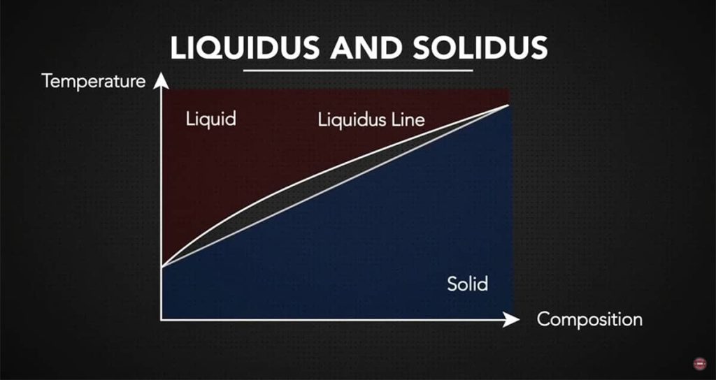 Graph displaying the relationship between liquidus and solidus in metal alloys.